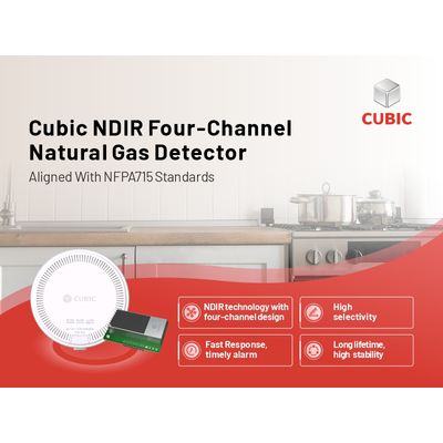 Responding to the requirement of NFPA 715, Cubic, a leading manufacturer of gas sensors and gas analyzers, has launched the JT-AM5301 natural gas alarm based on its mature NDIR technology. JT-AM5301 is an advanced gas detection solution designed in alignment with NFPA 715 requirements. Developed for residential kitchens, apartments, gas storage sites and other light commercial settings, the JT-AM5301 is innovatively equipped with Cubic's latest high-quality in-house designed 4-channel NDIR CH4 sensor core, offering fast, stable, and accurate natural gas leak detection.
