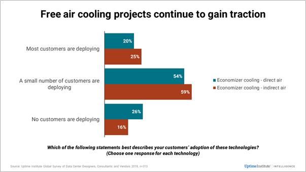 Some issues hampering the installation of free-air cooling will likely continue in the short term. These include the upfront retrofit investment required for existing facilities; humidity and air quality constraints; lack of reliable weather predictions in some areas; and restrictive service level agreements.