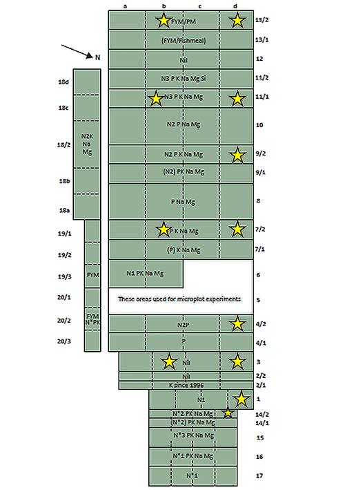 Rothamsted selected the unlimed subplot of eight main treatment plots covering a range of inorganic fertilizer and organic manure inputs, and an additional four subplots which receive sufficient lime to achieve a target soil pH of 6.