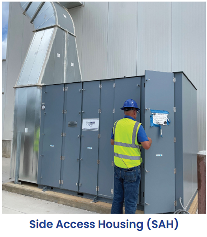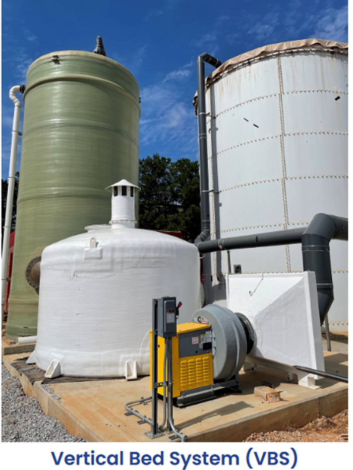 PureAir Filtration (PureAir) understood the challenge presented bythefacility and engineered and manufactured several Drum Scrubbers (DS), two Side Access Housing units (SAH12-604 with two media passes and SAH12-706 with three media passes), and one Vertical Bed Scrubber (VBS-10) to treat the elevated odor levels of H2S and organic materials. PureAir customized the scrubbers for individual processing stages to keep the equipment footprint as small as possible and the replacement media costs to a minimum. By mounting the drum scrubbers on skids, PureAir created the portable odor control solutions needed for future process relocations.