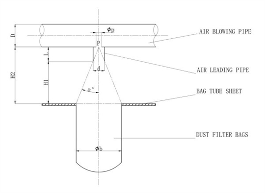 D=pulse jet valve outlet diameter, as usual the same to air blowing pipe.