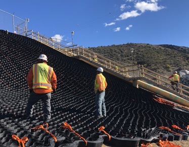 GEOWEB Geocells should be considered an industry best practice option for slope stabilization and a solution for pre- and post-incendiary erosion control on hilly, dry terrain prone to wildfire, drought, and erosion. The type of system as shown below in Figure 4 is an appropriate option for permanent and resilient erosion control at similar energy infrastructure sites around the world.