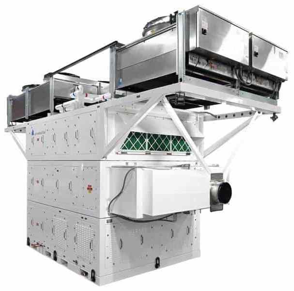 The system was configured to deliver between 1,000 to 3,500 CFM of air and up to two pounds of pressure per square inch (PSI). To prevent corrosion from salt air, the painted aluminum unit featured E-coated evaporator and condenser coils.