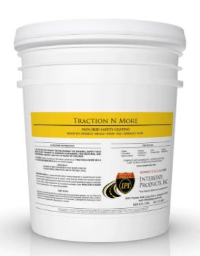 Interstate products continues to provide nonslip solutions to industry, government facilities as well as residential and contractor applications. Both products are available by special order in a pedestrian grade grit which has a lower profile grit for barefoot areas or livestock. New additions include the new low temperature cold weather non slip coating and the new "Bare Feet" version of the epoxy non slip coating Traction N More with a lower profile grit.