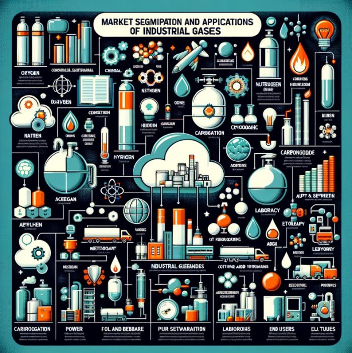 The market segmentation of industrial gases is diverse, ranging from oxygen, nitrogen, and hydrogen to carbon dioxide and argon. These gases find applications in packaging, coolant systems, carbonation, cryogenics, and cutting and welding processes. The end users span industries like metallurgy, healthcare, chemical, food and beverage, and electronics.