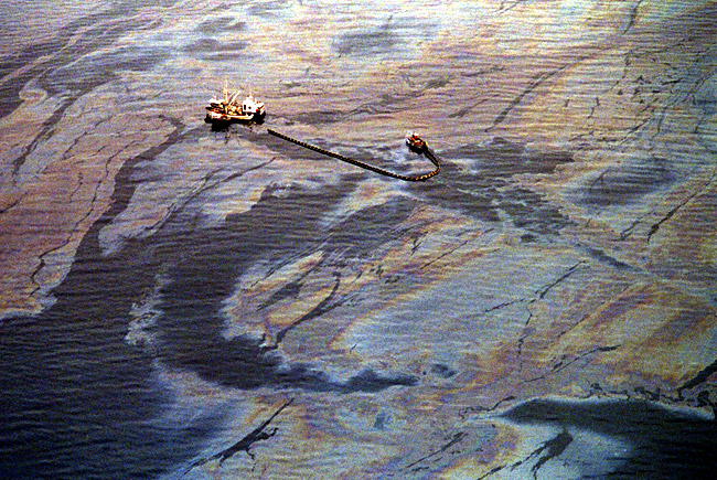 In 1989 the world’s first big oil tanker disaster occured off the coast of Alaska. The Exxon Valdez’s oil cargo polluted the pristine coast line of Alaska.