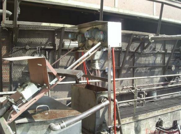 Compared to water the specific weight of scale is much higher. For this reason the scale particles will settle on the bottom of the scale pit and the longitudinal clarifier. The scale, collected on the bottom of the scale pit, will be removed by an excavator. The scale, which settles on the bottom of the longitudinal clarifier, will be collected in the deep part of the basin with the help of a scraper. From time to time the collected scale will be removed by an excavator.