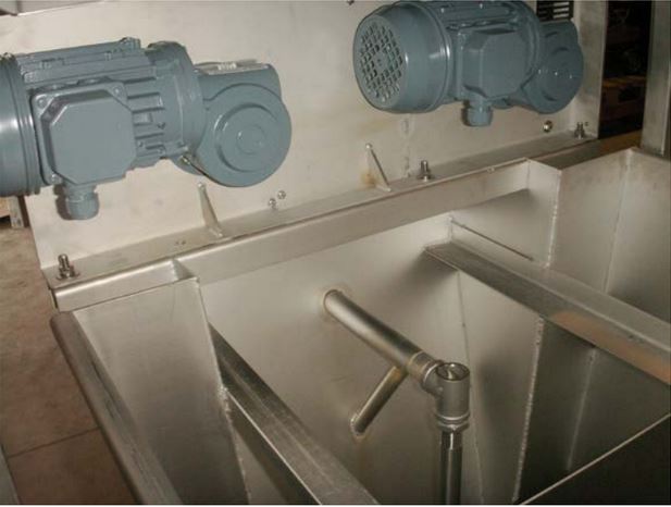 The oil skimmer will be mounted at the end of the longitudinal clarifier near the pump chamber. The oil collector tube floats on the water and will be guided parallel to the downflow baffle. The oil collector tube works along the whole width of the basin. The oil and grease, which has been picked up by the oil collector tube, floats from the scraper in the oil skimmer into sludge trap underneath the oil skimmer.