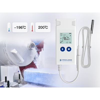 Liquid nitrogen environment temperature monitoring has high requirements for temperature recorders, such as stability and accuracy. The Atlas Log Ultra-Low Temperature Data Logger produced by Freshliance can maintain long-term stable operation in a −196°C liquid nitrogen environment for up to 90 days, and the accuracy can be stabilized at ±1°C throughout the process, which meets the liquid nitrogen temperature monitoring standard. The liquid nitrogen temperature data logger has an external probe, and users can choose a soft ultra-fine cable according to their needs. The probe is inside the container and the host is attached to the outside of the container. In addition to directly viewing the data through the LCD, it can also ensure the sealing of the container and the stability of the liquid nitrogen environment.