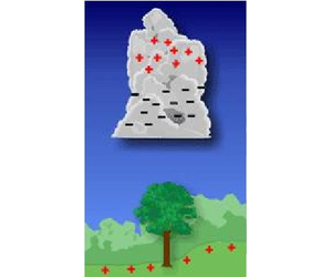 The electric field within the storm is not the only one that develops. Below the negatively charged storm base, positive charge begins to pool within the surface of the earth (see image left). This positive charge will shadow the storm wherever it goes, and is responsible for cloud-to-ground lightning. However, the electric field within the storm is