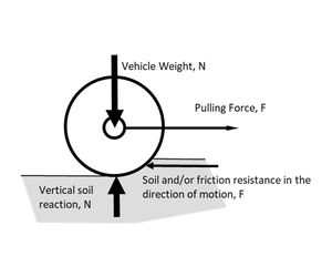 A major source of rolling resistance in unpaved roads is the depth of wheel sinkage into the surface under the vehicle’s weight.