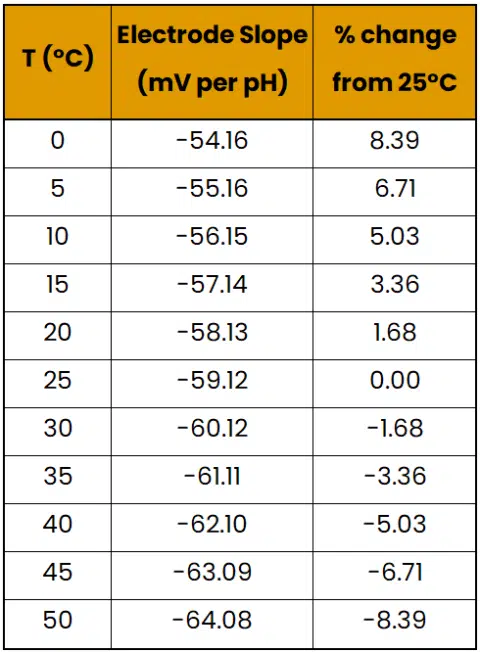 This equation allows one to calculate the electrode potential and slope at a given temperature, which is all the knowledge needed for this article. Images 2 and 3 provide examples of how electrode potential changes with temperature: