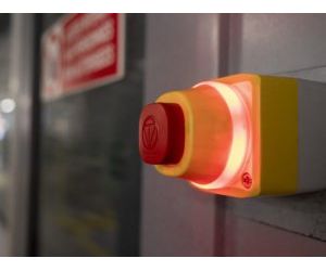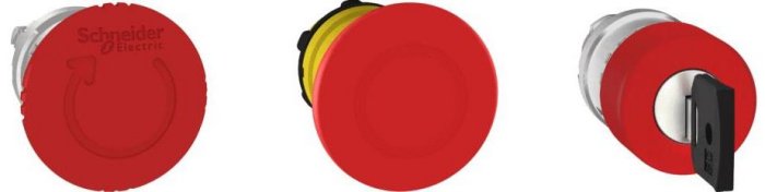 EMERGENCY STOP / OFF actuators must be identified by the color RED. Exceptions are allowed if the color is not available, in which case other means must be used to reliably identify the actuator function.