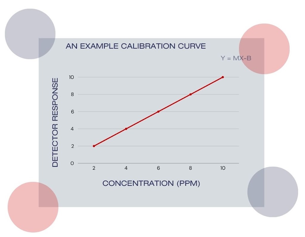 The calibration curve is constructed by plotting the GC detector response (typically peak area or height) on the y-axis against the known analyte concentrations on the x-axis. The goal is to establish a linear relationship between concentration and detector response.