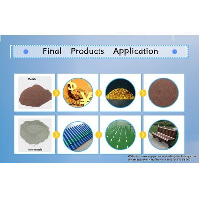 Different from the chemical or thermal approaches technologies, the separated metals by waste circuit board recycling machine has high purity, which can reach to 99%, and the quality won't be damaged. The metals has good selling market, which can bring high profit to us. The non-metallic fraction from waste circuit boards could also be added as fillers to fabricate high-strength composites, like high-strength fabrics or heat- and corrosion-resistant fabrics, FRP tanks and vessels, etc.