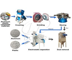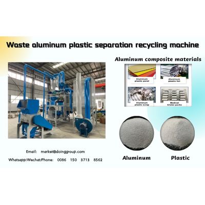 Aluminum plastic recycling machine is mainly to recycle aluminum plastic composite materials, medicine blister packs, waste materials of aluminum doors and windows, etc. DOING Brand aluminum plastic recycling machine can be customized based on customers' raw materials kind.