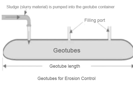 The process begins with the filling of the geotube. The sludge or slurry, which is a mixture of solid particles and water, is pumped into the geotube. The geotube is usually made of a permeable geotextile material that allows water to pass through while retaining the solid particles.