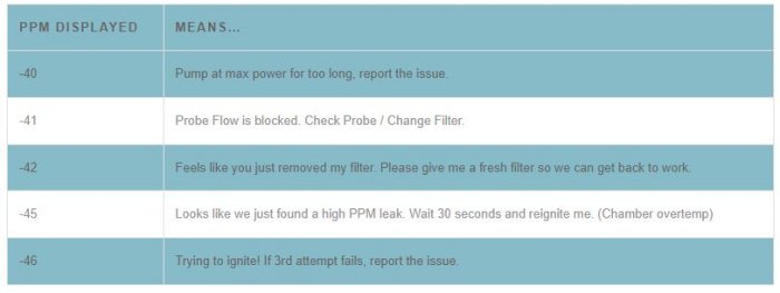 If you are running non-LDARtools monitoring software, you may not see the prompts mentioned above. To remediate this, you can install Firmware 1.9.192, which will allow you to see these numbered error PPM codes:
