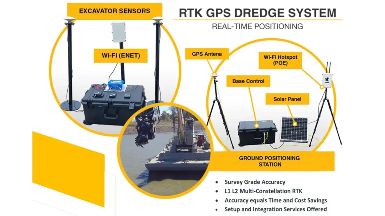 Integration with RTK GPS provides centimeter-level accuracy in excavation and sediment placement. Automated dredge platforms use these signals to maintain the desired dredging depth and track progress, minimizing operator error and over-dredging.