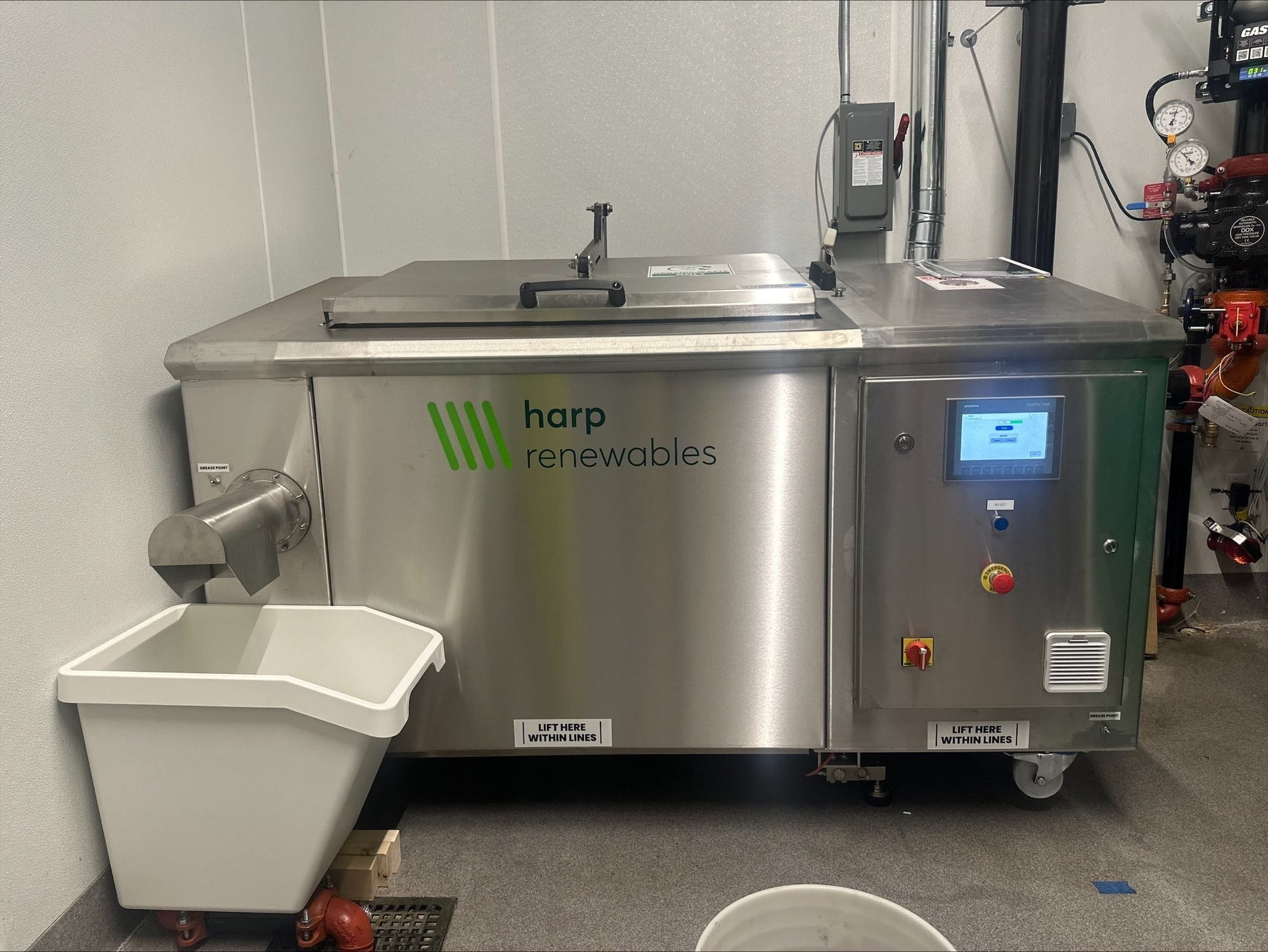 The Harp CX2 is an aerobic on-site food waste processor designed to efficiently manage orgainc waste by converting it into high-value fertiliser. Capable of processing up to 2,000 liters of food waste weekly, the CX2 reduces food waste volume by up to 70%. The system uses oxygen-loving bacteria to break down food waste, producing nutrient rich compost in less than 24 hours. This process not only helps divert waste from landfills but also reduces harmful greenhouse gas emissions that would otherwise occur in landfill environments.