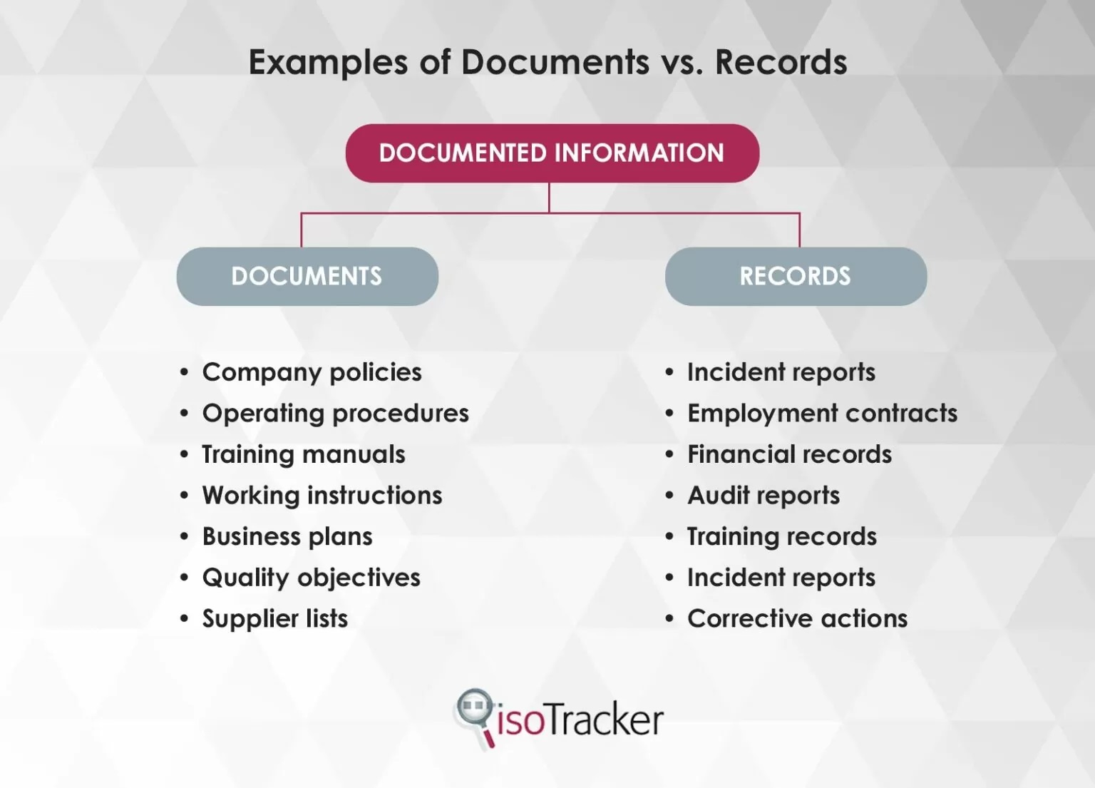 Some documented information can be changed or updated (documents). Other documented information doesn’t change (records).