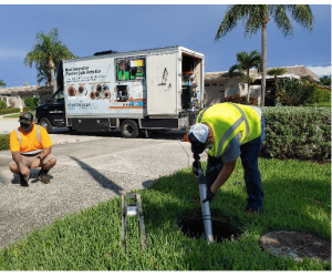 After spending decades and millions of dollars rehabilitating sewer pipes across its service area, a large coastal utility embarked on a pilot pipe condition assessment program for 25,000 linear feet in areas prone to high unwanted infiltration rates. Electro Scan’s Focused Electrode Leak Location technology, or FELL, offers an innovative departure from legacy pipe inspection methods, such as visual CCTV, dye testing, smoke testing, among many others. The key advantages of FELL inspection is obtaining precise pipe defect locations, to within 1 cm, as well as a quantified infiltration flow rate for each defect, reported in Gallons Per Minute.