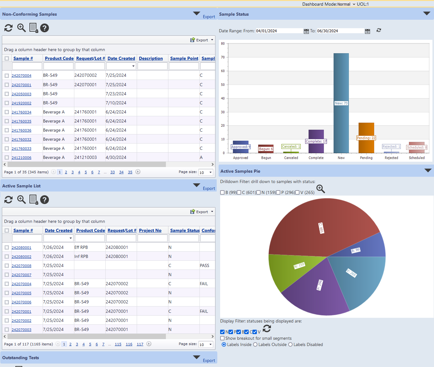 To simplify the workflow process, the status of lab requests, samples, tests and schedules are automatically updated within interactive dashboards to allow laboratory throughput to be continuously monitored.