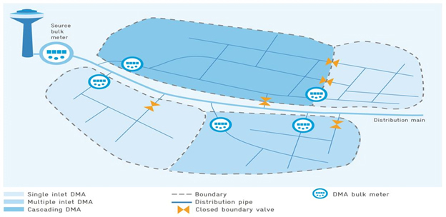 - District Metering Areas (DMAs). Monitoring DMAs allows water utilities to track and control specific service zones independently. This makes it easier to identify flow trends that might indicate potential problems.