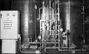 A single-stage tower, with high-performance polypropylene packing was sufficient to carry out the absorption. This is followed by a reactor vessel, a piping loop and recirculating pump. The towers have diameters of 24 in. (i.d.) and are 28 ft tall; the height is not a problem since the towers can be installed outdoors.