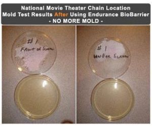 The manager called in a mold remediation contractor to clean up the mold problem. Luckily for this theater manager, this contractor was one of the first mold remediation service providers to test and then begin using Endurance BioBarrier Mold Prevention Spray.