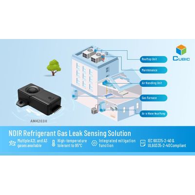 Simultaneously, to fulfill more efficient refrigerant gas leak detection under high temperature working conditions, Cubic has specially designed high-temperature resistive refrigerant leak sensor, AM4203H series, for fan coil, gas furnace, heat pump applications. Based on NDIR technology, AM4203H has the advantages of best-in-class accuracy, fast response, superior resistance to high temperature, humidity and pressure impact. AM4203H series also keep integrated mitigation function with built-in relay design, which provide HVAC&R equipment more convenient and flexible dry contact control for fan and compressor to ensure high reliability for refrigerant detection system.