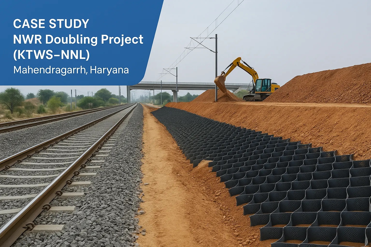 The KTWS–NNL stretch in Mahendragarh, Haryana, is a vital link under the NWR zone. Doubling this section ensures seamless connectivity for both freight and passenger trains, catering to the region’s industrial and agricultural outputs. However, the project came with a set of engineering challenges—the soil conditions, load-bearing capacity, and embankment stability required a reliable geosynthetic solution.