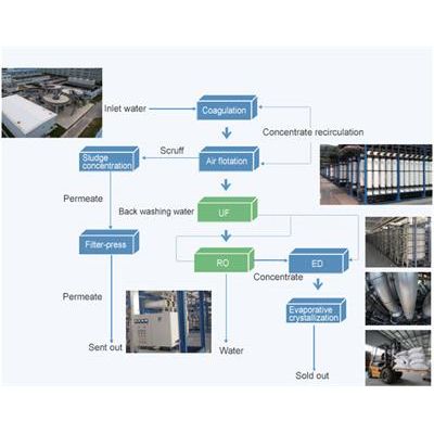 Jiangsu Jiuwu Hitech Co., Ltd has done the largest zero liquid discharge project in paper pulp industry. The project is located in Japanese Oji Paper Co., Ltd. (OJI PAPER) in China, the scale of 40000m3/day of papermaking, pulp wastewater. Main processes include ozone-coupled biofilter (removing COD), the integrated membrane system of uf technology and reverse osmosis, electrodialysis (EDR) concentration system, MVR evaporation crystallization system. Through above-mentioned advanced processing system, the realization of wastewater recycling and zero liquid discharge. The clean water is supplied to the power plant desalination system and the production water system, waste salt is supplied to the Transportation Bureau to do snowmelt agent and chemical raw materials. The project which is the world's largest zero liquid discharge project in paper pulp industry has been stably operating for more than 3 years.
