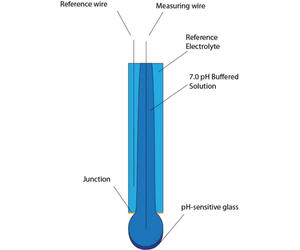 A glass pH electrode uses a bulb made from pH-sensitive glass to measure a voltage when the electrode is submersed (Details of how it works will be found in the next section). This method is highly accurate, has an excellent response-time, and can be adapted to fit most applications. The downsides are: