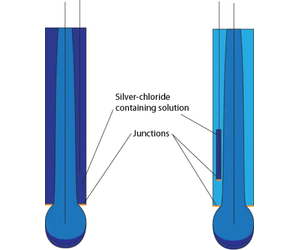While the name might not be clever, the design is extremely effective. A second, inner chamber is created that houses the reference wire, resulting in significantly longer diffusion times across a second membrane and reducing the oxidation rate of the wire element. This has resulted in greatly increased life expectancy and a wider range of applications for electrodes with double junctions. There is no case where single junction outperforms double junction, but single junction electrodes are slightly cheaper. Double junctions have also made Calomel electrodes effectively obsolete as nearly all the silver chloride of Ag/AgCl electrodes remains in the inner chamber. Calomel will still perform better in solutions with high concentrations of heavy metals, proteins, and some organic matter, but the risk of mercury poisoning and contamination due to breakage often outweighs the benefits in performance.