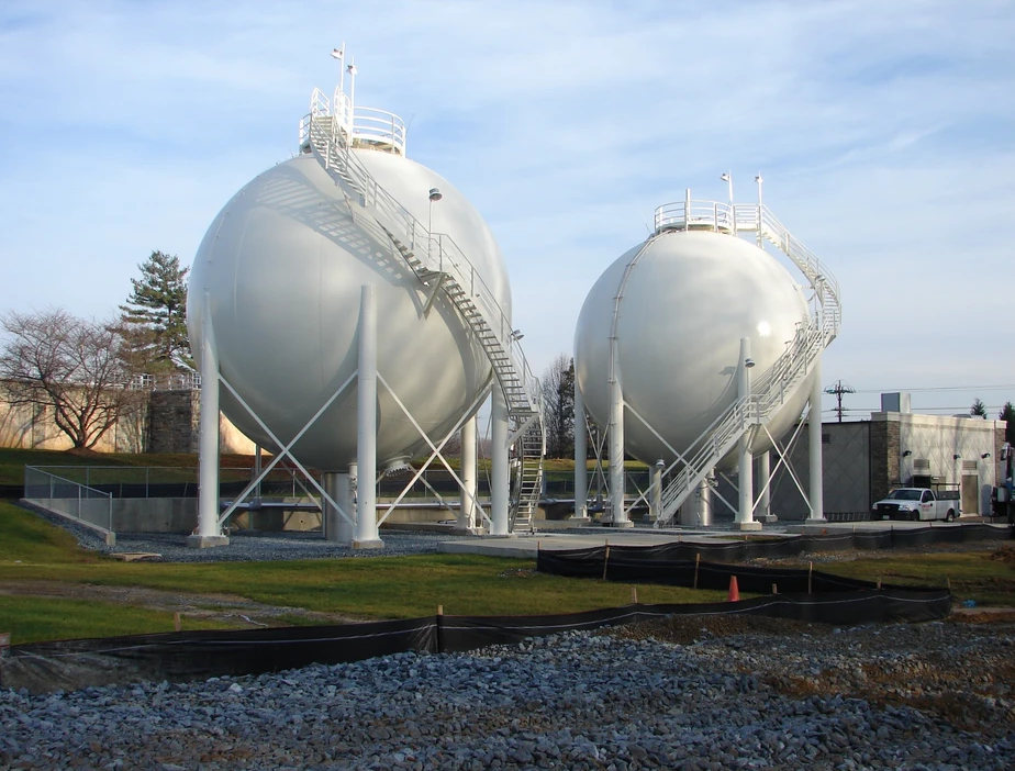 The project required caisson foundations for two 30ft. dia. spherical tanks, 60” dia. steel welded water mains, construction of a pump and control building, compressed air surge control system and pump control valve replacement at the Potomac Water Treatment Plant in Potomac, MD.