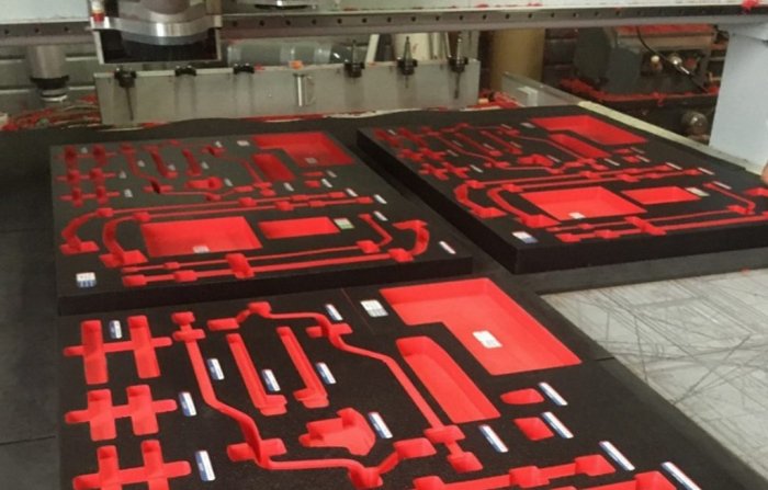 Finally, it was time to begin the various stages of production of the trays: SkinPack’s specific and patented membrane projection, high-precision CNC machining of the foam for the trays, and lastly the addition of identification, coding and counting components.