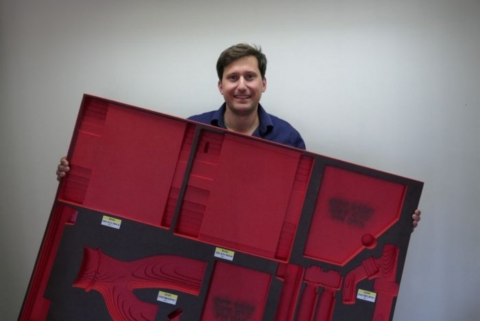Using the HandySCAN BLACK | Elite scanner has enabled SkinPack to set itself apart from the competition. In fact, the speed of implementation and the high degree of precision of data acquired of a wide variety of materials played a crucial role, since these measurements had to be taken on site. In addition, without scanning the parts and creating a digital library, it would have been more complex and time-consuming to obtain the exact impressions of the parts for precise machining of the foam blocks.