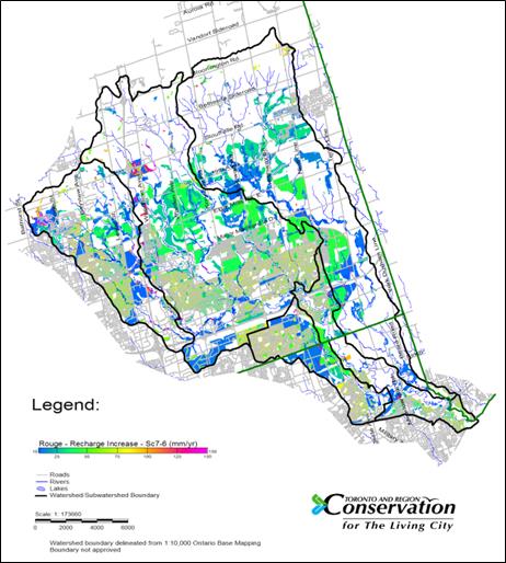 The surface water groundwater simulations initiated in this project were subsequently merged into a fully-integrated GSFLOW model of the entire TRCA. This model, completed in 2014, further quantified the effects of land development and drought conditions on water resources in the TRCA watersheds.