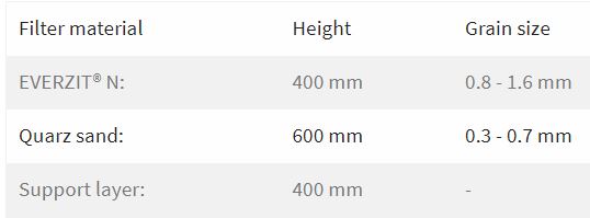 Used as the upper layer in these multilayer filter beds, EVERZIT® N increases treatment capacity and reduces operating costs by providing specific benefits: