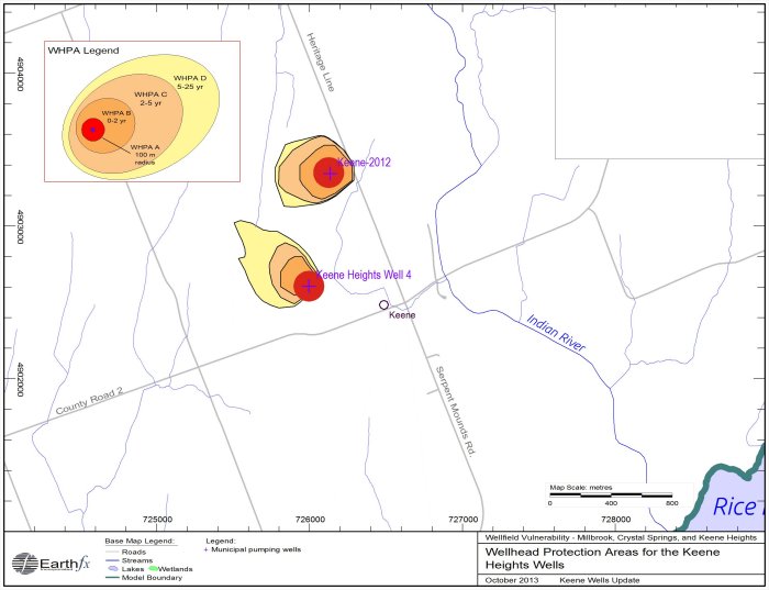 Earthfx Incorporated delineated wellhead protection areas (WHPA) for all municipal wells within the Trent Conservation Coalition Drinking Water Source Protection Region. Included in this analysis were the municipal wellfields serving the communities of Millbrook, Crystal Springs and Elgeti, and Keene Heights located north of Rice Lake.