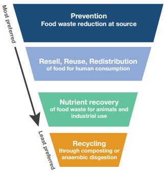 Turning biodegradable waste, such as food waste, into compost helps to reduce emissions and recover plant nutrients. Composting is the fourth tier of the hierarchy of actions to prevent and divert food waste. Above it are the use of food waste as animal feed (tier three) and the distribution of still edible but not marketable food (tier two). The prevention of food waste is at the top of the hierarchy as the most preferred.