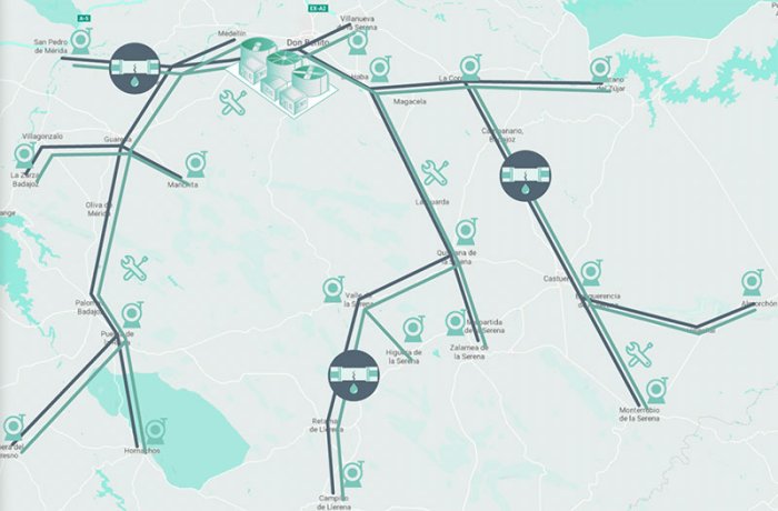 In a conventional, centralized model of wastewater management, seen here across a mountainous rural area in Spain, pipelines to a central plant require many pumping stations and are subject to leaks. The pipelines are energy-intensive and amount to two-thirds of CAPEX. One failure can be catastrophic to the system as a whole.