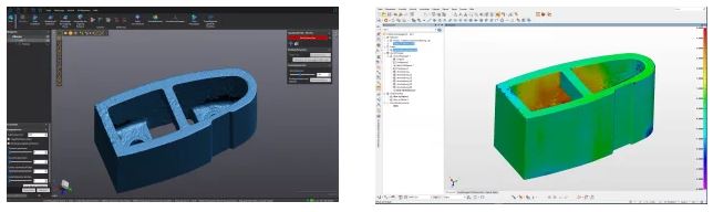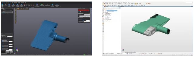 In order to obtain a complete CAD model, it is necessary to perform a surface reconstruction. This was implemented in Polyworks Modeler. The polygon models generated from the scan files serve as a foundation here. During processing, CAD’s images of the filler piece and its counterpart were generated on the guide vane.