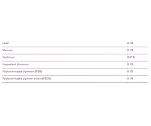 The restricted substances are listed in annex II of the directive1). The tolerated maximum concentration values are given by weight in homogeneous materials: