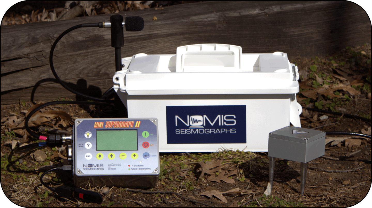 Figure 1 shows a plan view of the instrumentation location relative to the blast of Pier E3 approximately 3000 ft away. Table 1 provides a summary of operating parameters for each instrument. The comparative study was conducted to determine relative peak amplitudes of motions and frequencies as a function of sample rate and geophone low‐end resolution. Seismographs included a Nomis Supergraph II set to record at 16,384 Hz, a White MiniSeis III set at 4096 Hz, and two MiniSeis II, set at 2048 Hz. The MiniSeis II units employed geophones of two different low‐end resolutions. A PCB Piezotronics accelerometer, model 356A34, was mounted on the tunnel wall to obtain direct acceleration that was of interest to the BART engineers. A SoMat eDAQ‐Lite data acquisition system was used to capture acceleration time histories at a sample rate of 100,000 Hz.