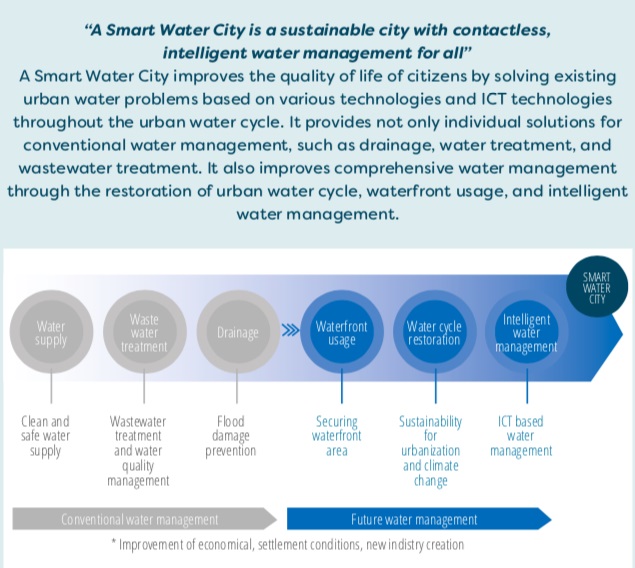 The Smart Water Cities project is a three-year project dedicated to the analysis of smart water technologies in urban developments. It is run collaboratively by IWRA, the Korea Water Resources Corporation (K-Water) and the Asia Water Council (AWC) from July 2020 to December 2023.