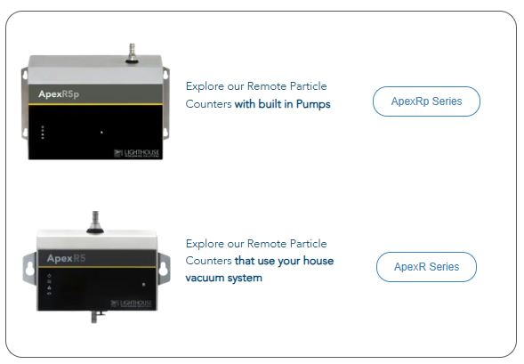 Lighthouse offers a full line of remote airborne particle counters built for regulated cleanroom environments. With models available in multiple flow rates (0.1 CFM and 1.0 CFM), these counters are: