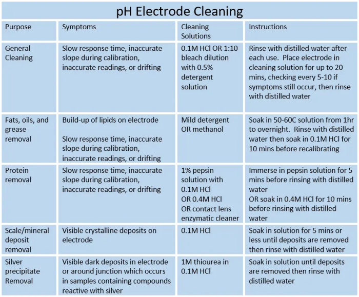 - Solutions: Allow temperatures to stabilize and research potential chemical reactions. If frequent, rapid temperature changes or low conductivity ranges are common then a special pH electrode may be required