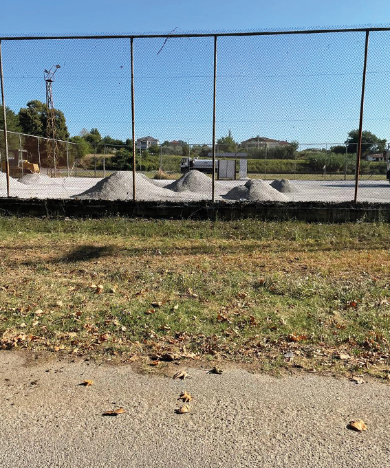 After careful evaluation, the team concluded that the crushed rock material demonstrated a significantly stronger bond with DUST/BLOKR® /SB compared to the other options. This material exhibited superior cohesion, which would enhance the long-term durability and stability of the tennis court surface. Consequently, the decision was made to proceed with the application of a 5-7 cm topical layer consisting of fine crushed rock, providing an optimal foundation for the integration of DUST/BLOKR® /SB.